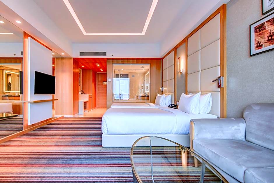 This triple room features a rooftop pool. Featuring free toiletries and bathrobes, this triple room includes a private bathroom with a walk-in shower, a hairdryer and slippers. The spacious air-conditioned triple room features a flat-screen TV, soundproof walls, a mini-bar, a tea and coffee maker as well as lake views. The unit has 1 bed.